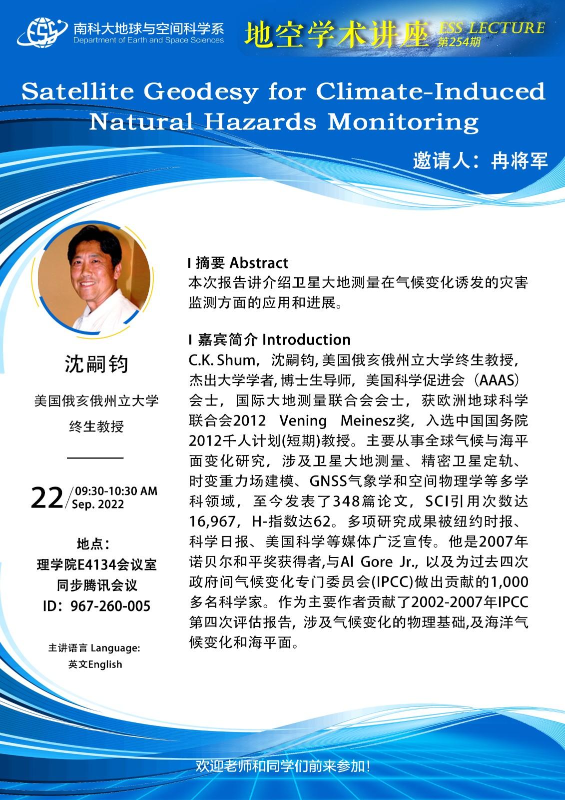 Satellite Geodesy for Climate-Induced Natural Hazards Monitoring