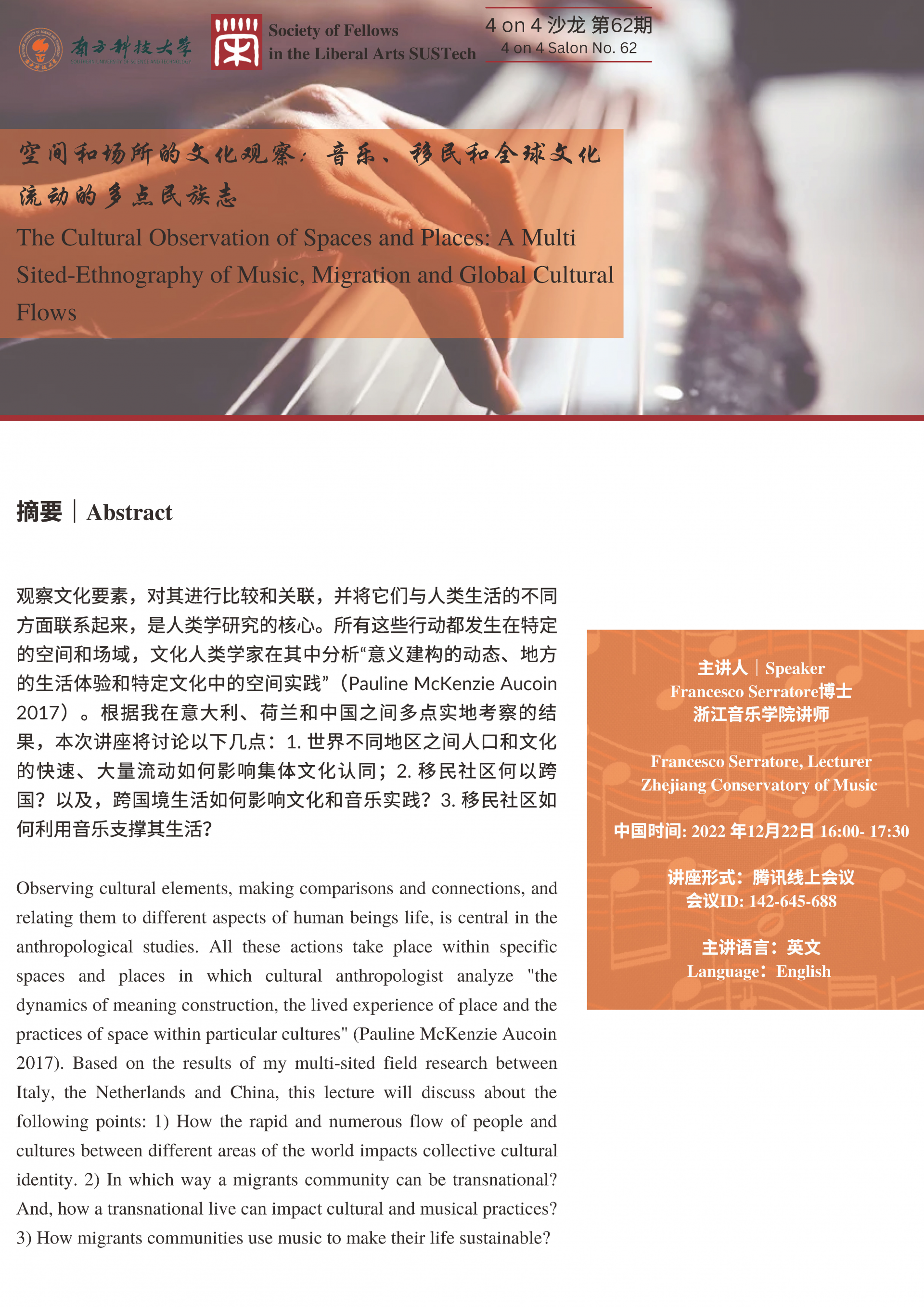 Tencent Meeting ID: 142 645 688, C102, School of Humanities and Social Sciences
