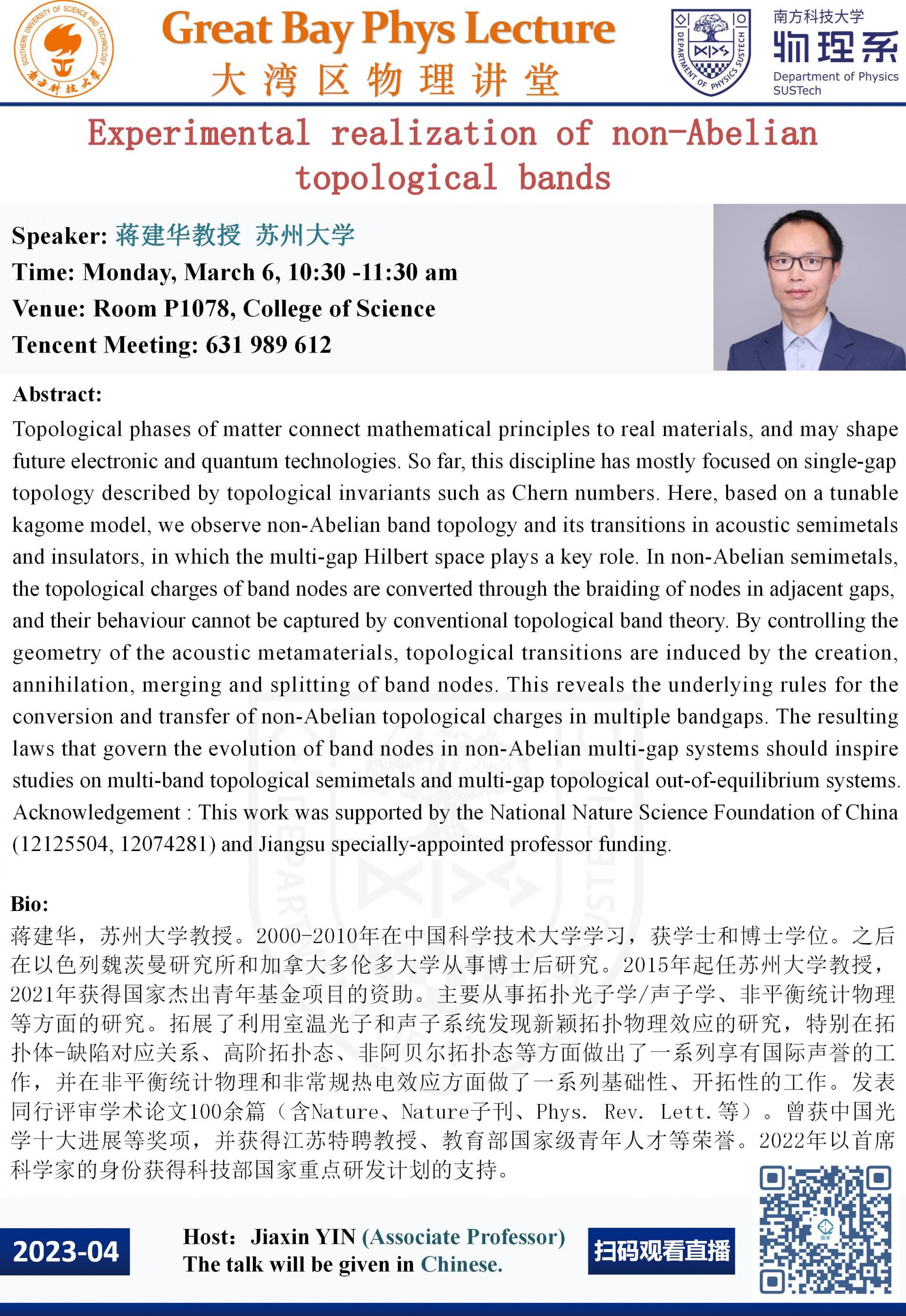 Room P1078, College of Science,Tencent Meeting ID: 631 989 612