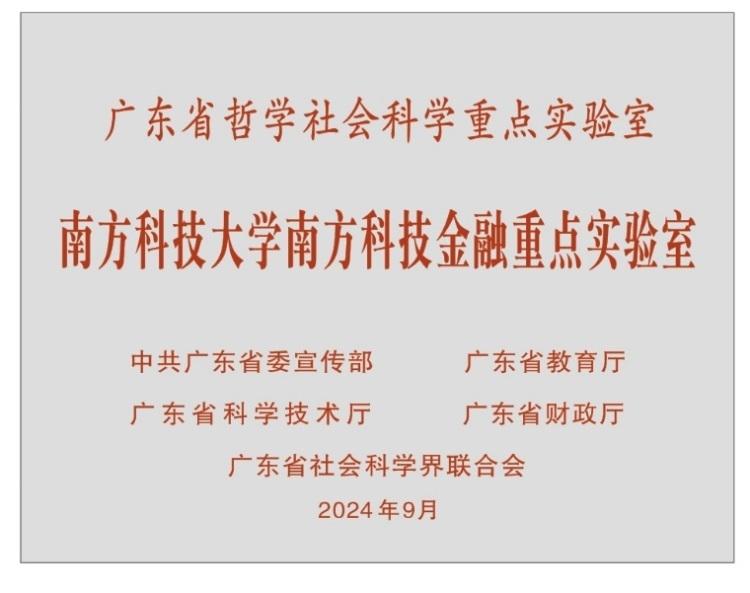南方科技金融重點實驗室依托南方科技大學南方科技金融研究院組建,于2024年獲批成為廣東省哲學社會科學重點實驗室。實驗室是南科大科技創新生態體系的重要有機組成部分,重點任務包括科技金融的技術解決方案與應用、科技產業評價與價值發現、科技金融戰略發展與決策研究、科技金融的學術交流與智庫建設、以及科技金融人才培養與課程研發等。實驗室定位于打通全過程科技創新生態鏈,結合中國實踐,直面科技金融的難點痛點,打造科技金融研究與實踐的典范,提出金融支持科技創新的中國解決方案,為高水平科技自立自強貢獻廣東與“南科大”的智慧和力量。